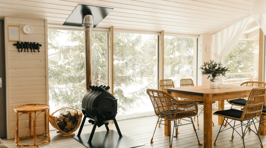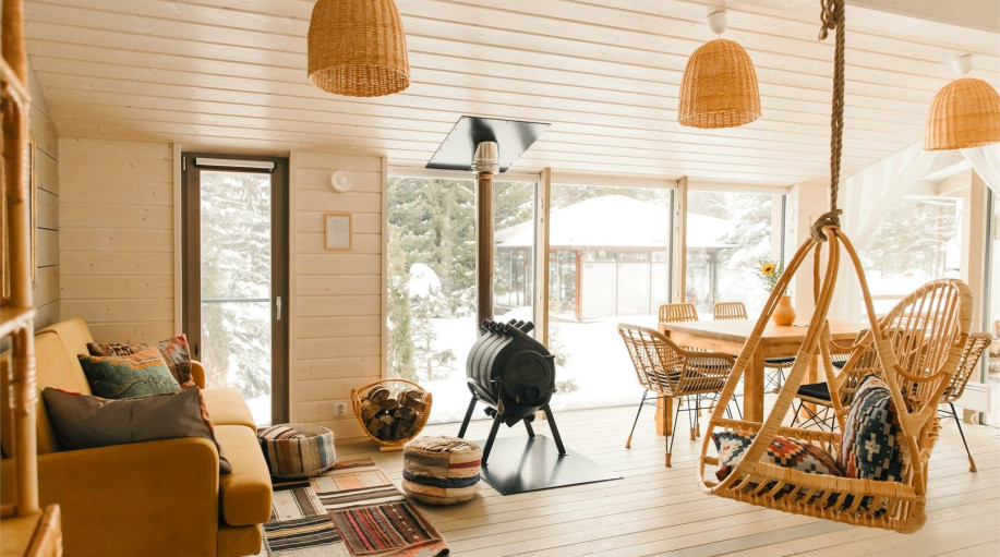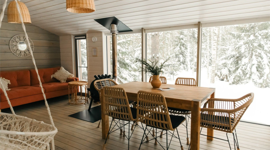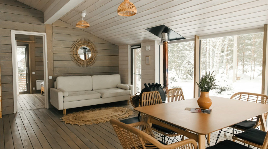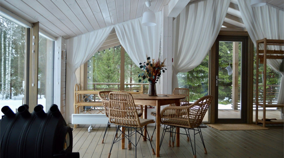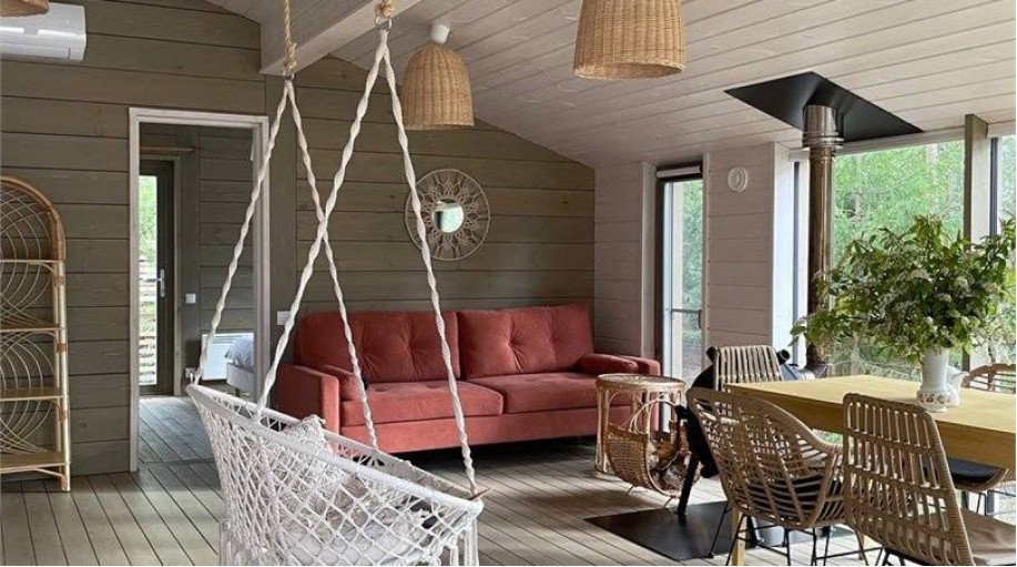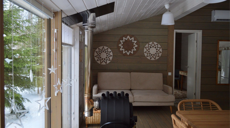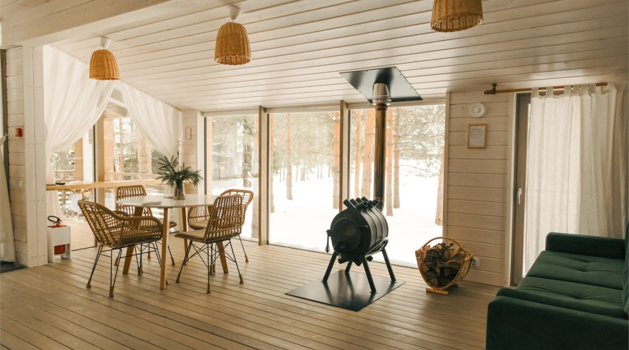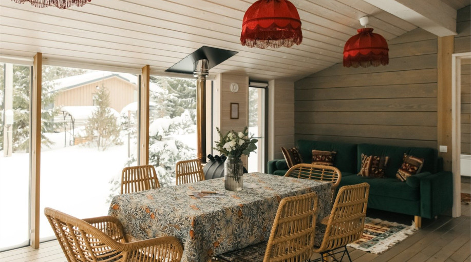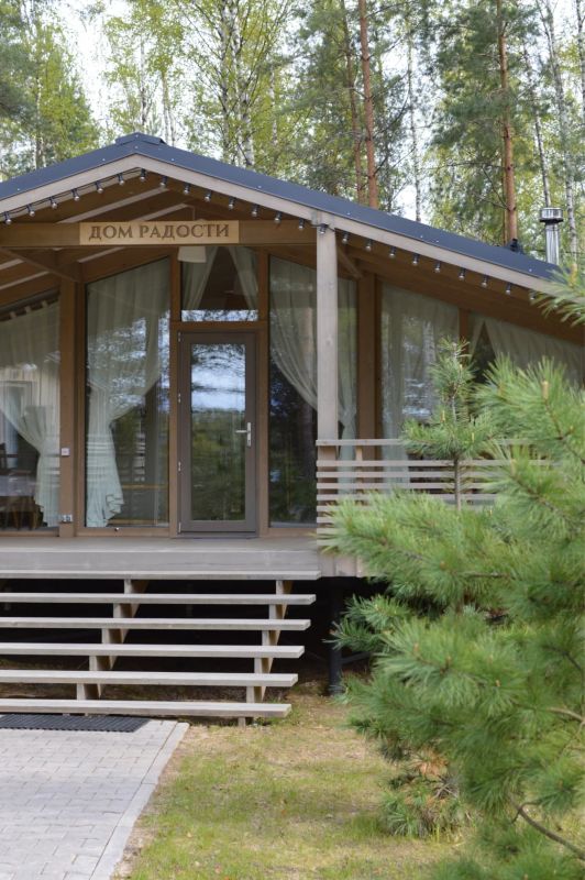Дом радости - панорамный дом с 3 спальными комнатами и гостиной-кухней. Мы верим, что каждый Гость этого дома погрузится в состояние радости благодаря атмосфере, созданной здесь. Уютная качель напротив печки, чашка ароматного кофе и тёплый плед помогут радоваться настоящему моменту счастья и покоя! ..