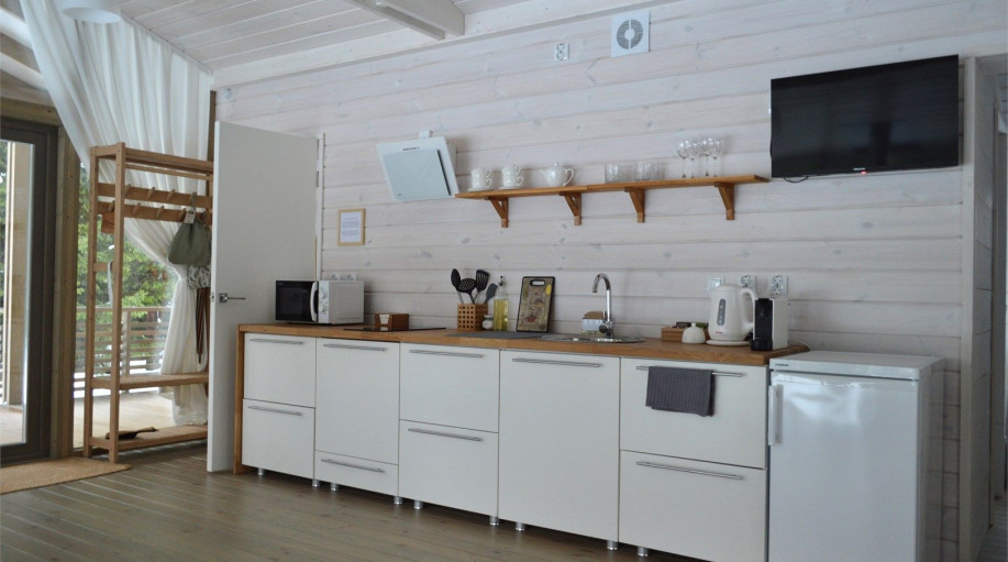 ✔ кухня (в некоторых домах) с кофемашиной и холодильником;