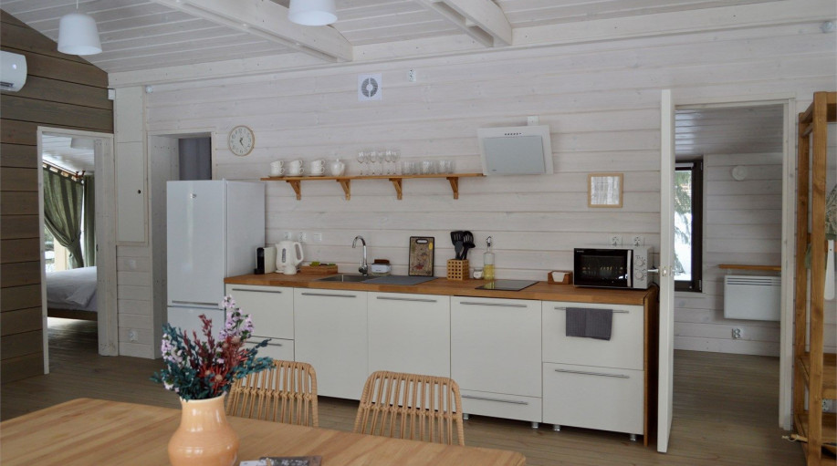 Чайный дом - панорамный дом с 1 спальной комнатой и гостиной-кухней. Дом с особенной атмосферой, где хочется наслаждаться ароматом чая! В доме есть все необходимое для комфортного отдыха всей семьей. Общая площадь дома 44 кв м. Предназначен для проживания 3 человек (за дополнительную плату возможно ..