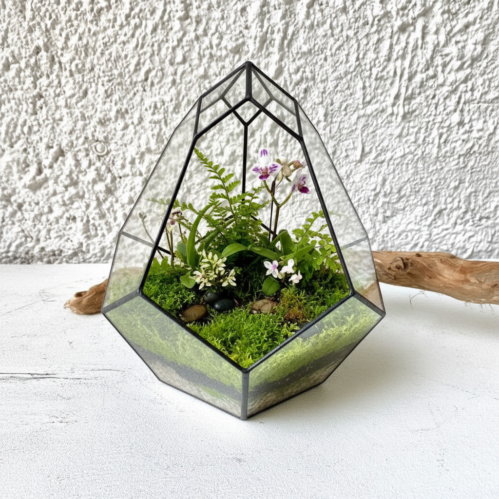 Пакет 3: Средняя геометрическая форма (икосаэдр, капля, додекаэдр, пирамида, сердце) + 3-5 растений + материалы + декор.