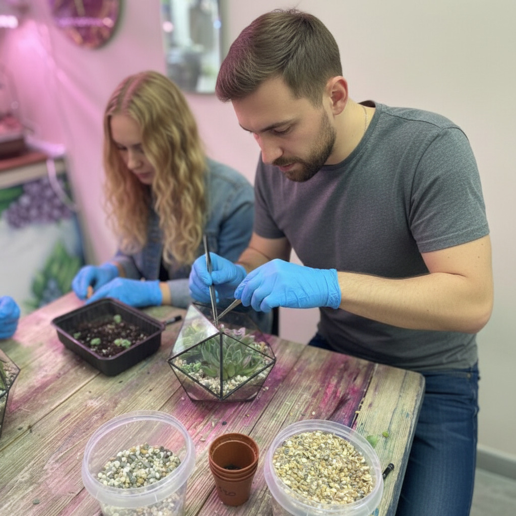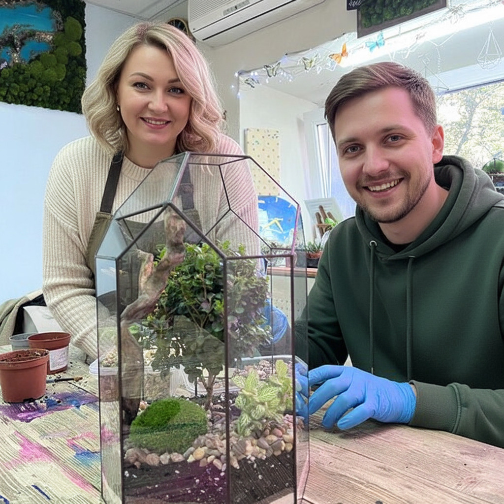 Суть мастер-класса: Это практическое занятие, где под руководством опытного флориста участники создают свой собственный флорариум.