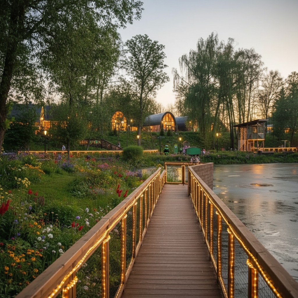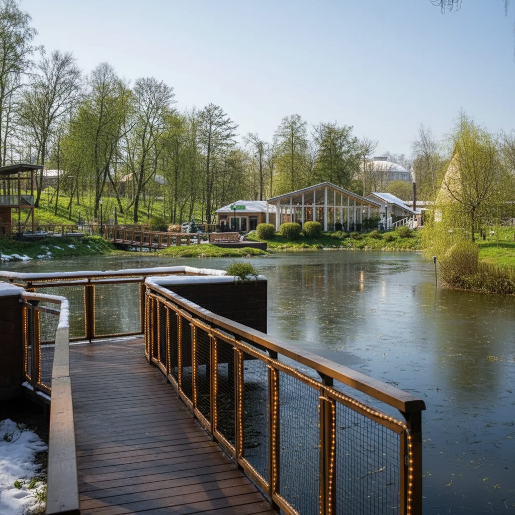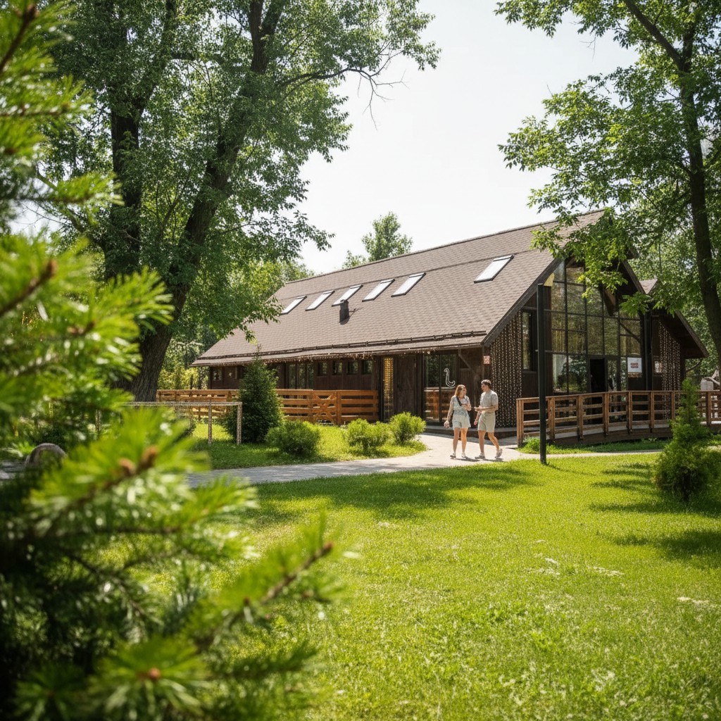 Главное место фермы — просторный хлев, где животные чувствуют себя как дома. Они могут свободно выходить на прогулку и отдыхать в своём пространстве. На территории вас также ждут: птичий двор, голубятня, крольчатник, енотник, оранжерея, творческие мастерские, уютное кафе и летняя закусочная.