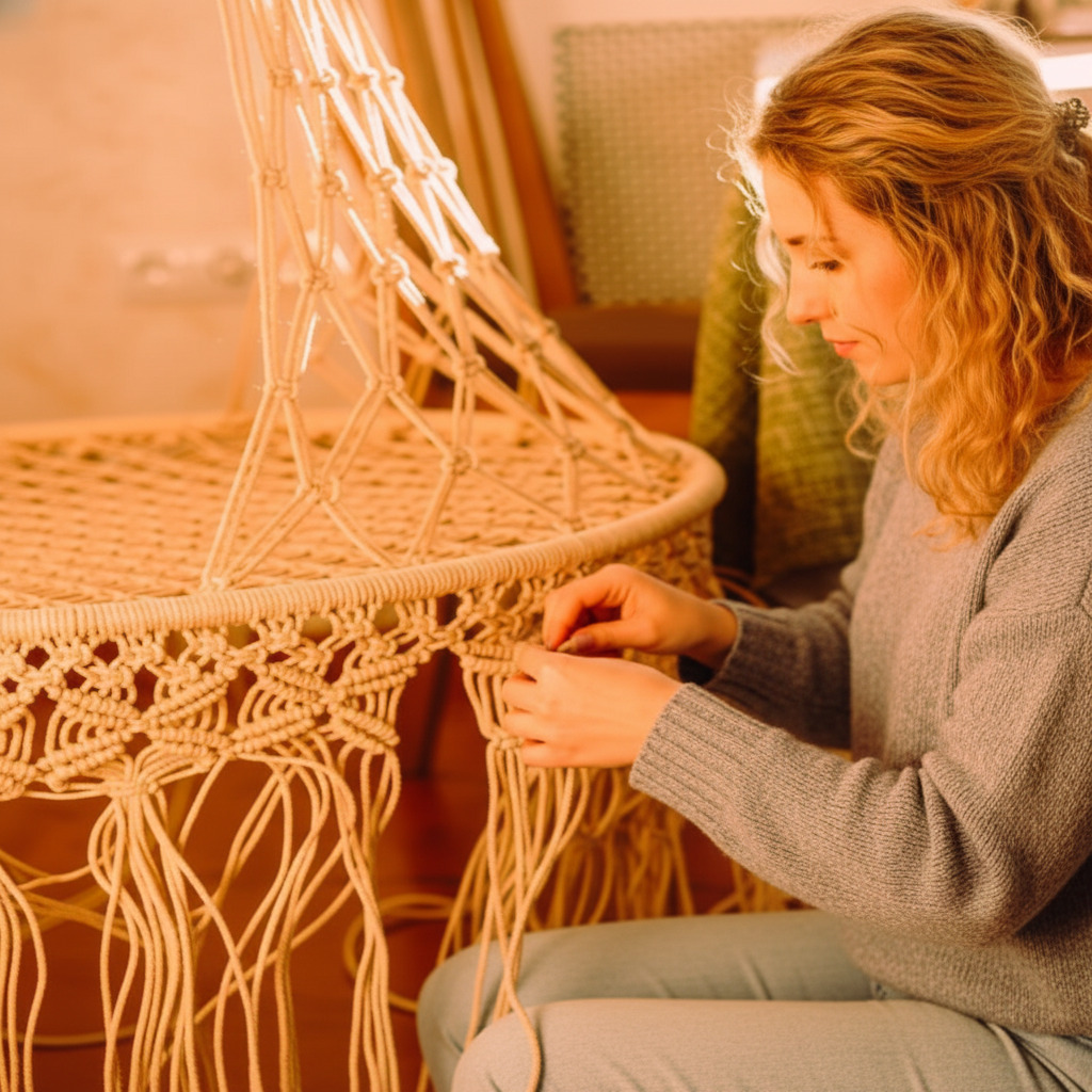 Макраме — это древнее искусство узелкового плетения, которое сегодня переживает новый всплеск популярности! С его помощью можно создавать уникальные предметы интерьера и стильные аксессуары: от сумок и ковров до уютных кресел-гамаков, настенных панно, кашпо для растений и абажуров. Возможности ограничиваются только вашей фантазией!
