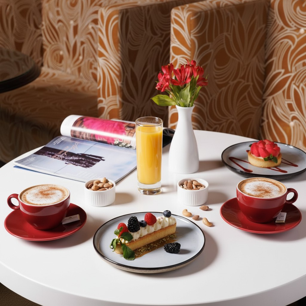 Гастрономия: Ресторан-театр «Партер», уютное кафе «Бульвар», атмосферный гриль-бар «Артурс», лобби-бар.