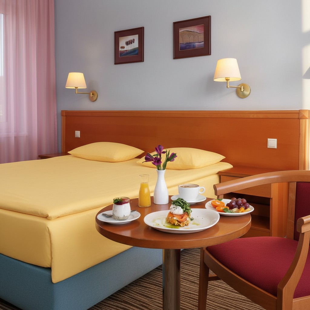 - В проживание включено: номер на сутки, завтрак по системе "шведский стол", 2-х часовое посещение Wellness центра.
