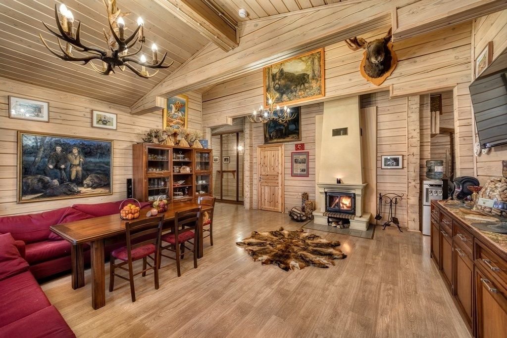 Этот просторный (160 м²) и по-домашнему уютный коттедж пленит своим неповторимым колоритом и самобытным духом охотничьего дома.