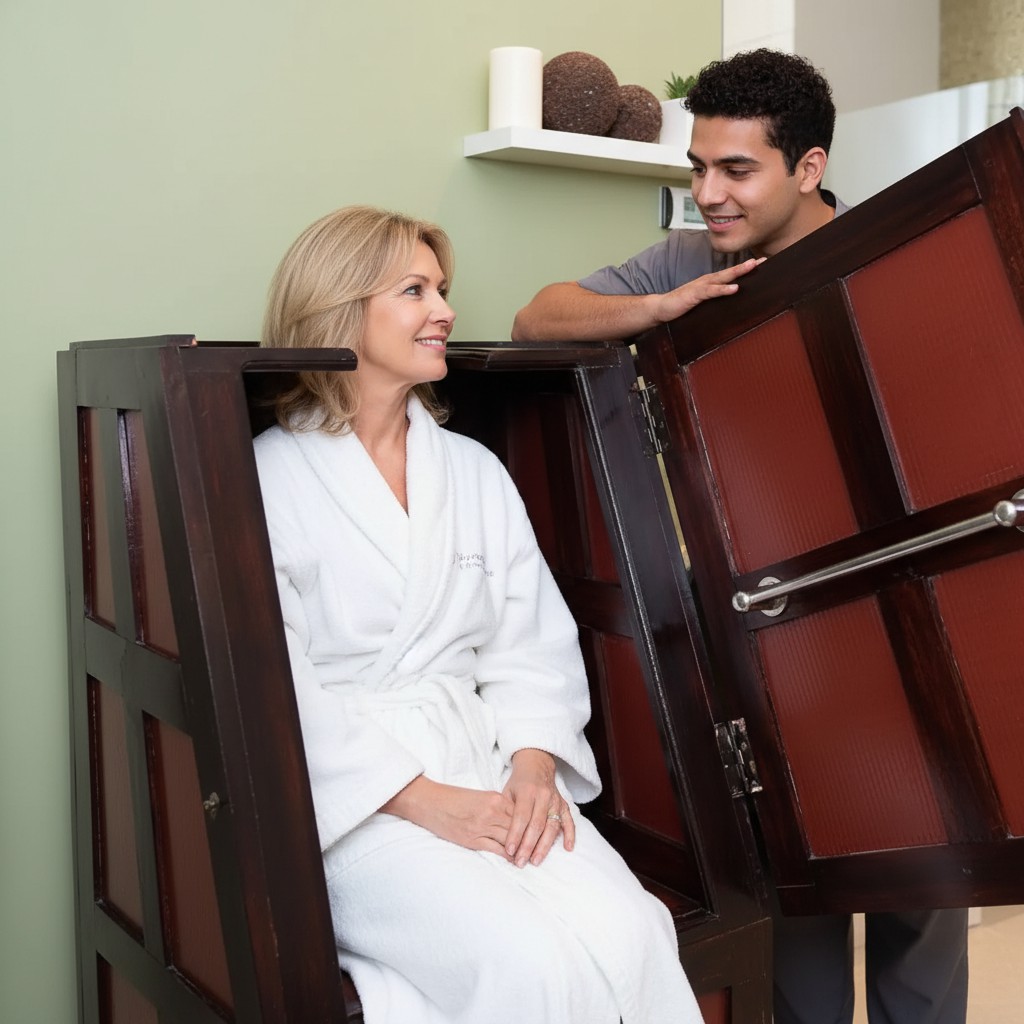 В аюрведе процесс потоотделения считается одним из ключевых методов детоксикации, помогающим вывести шлаки и токсины. Для максимальной пользы и безопасности голова во время сеанса остается снаружи, что позволяет избежать перегрева и обеспечивает комфорт.
