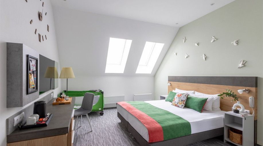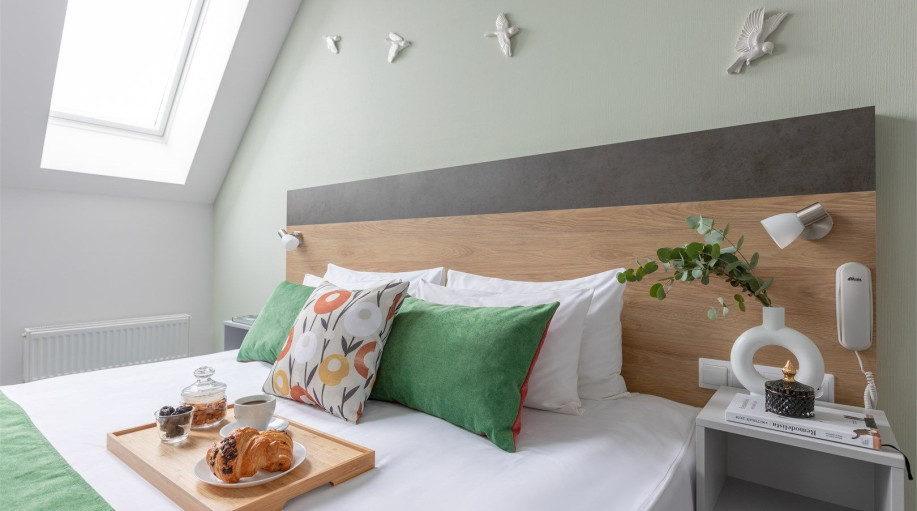 Позвольте себе отдых в окружении комфорта и изысканного дизайна с чашечкой отличного кофе! Модерн с мансардными окнами - светлый, комфортный, стильный и просторный номер площадью 22 кв. м., расположенный на мансардном этаже отеля. Здесь с удобством могут разместиться от одного до трех гостей. В номе..