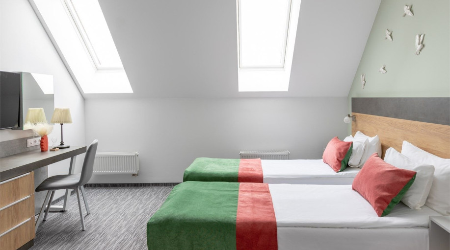 Разместитесь на время путешествия в светлом уютном номере, выполненном в классическом дизайне с сочными цветовыми акцентами. Классик с мансардным окном - номер стандартной категории площадью до 15 кв. м. с одним окном, расположенный на мансардном этаже отеля. Оснащен на выбор двумя раздельными или о..