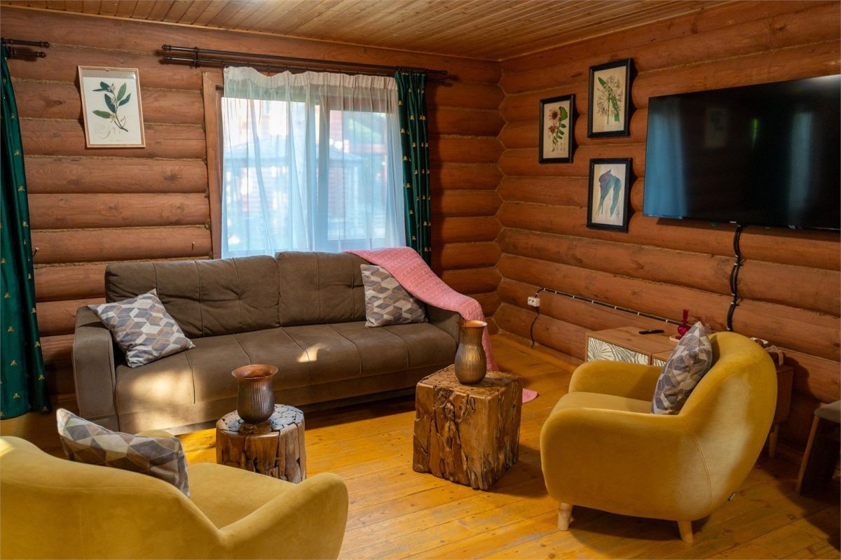 ✔ Кухня-гостиная расположена на первом этаже. Оснащена диваном, креслами и ЖК телевизором, обеденным столом. Полностью укомплектована всей необходимой техникой и посудой.