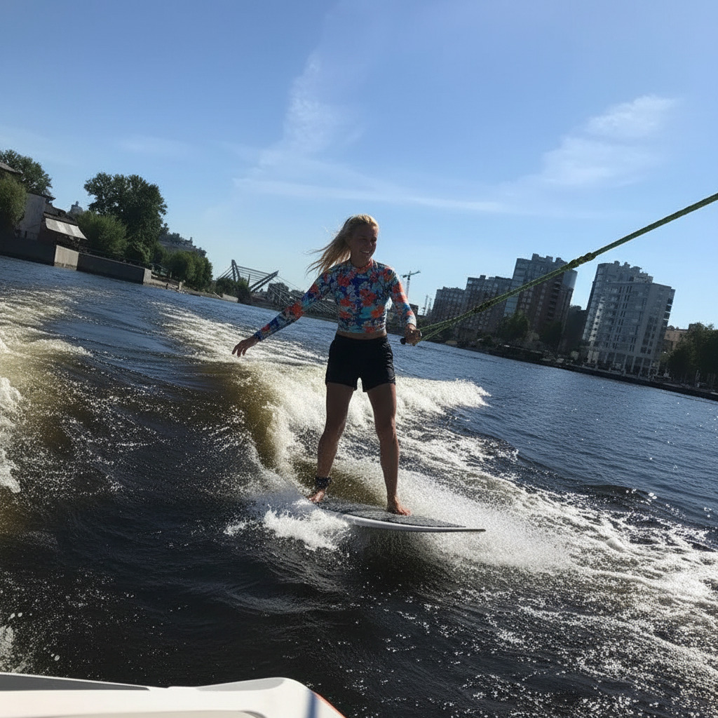 Мечтали о серфинге, но до океана далеко? Вейксерфинг дарит все ощущения классического серфа прямо в городе! Это захватывающее катание на специальной доске за катером, который создает идеальную волну. Держитесь за фал на старте, а как поймаете баланс — отпускайте и почувствуйте себя настоящим покорителем волн! Если страшно — можно кататься с верёвкой сколько угодно: драйв и эйфория гарантированы в любом случае.