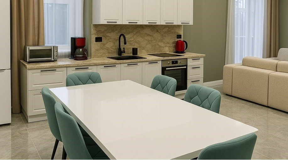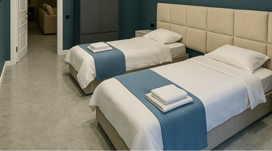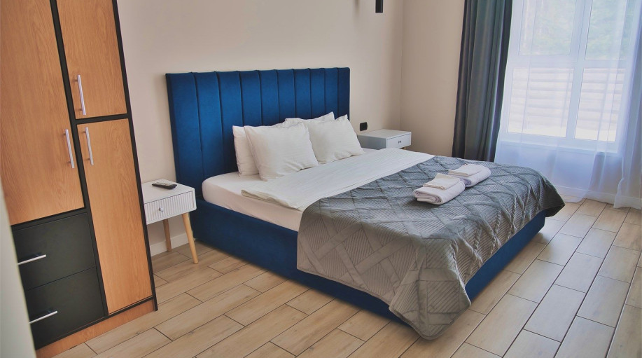 Размещение: 4 (+2), 2 отдельные спальни (в одной - одна большая двуспальная кровать, в другой - 2 односпальные, в гостиной уютный раздвижной диван.