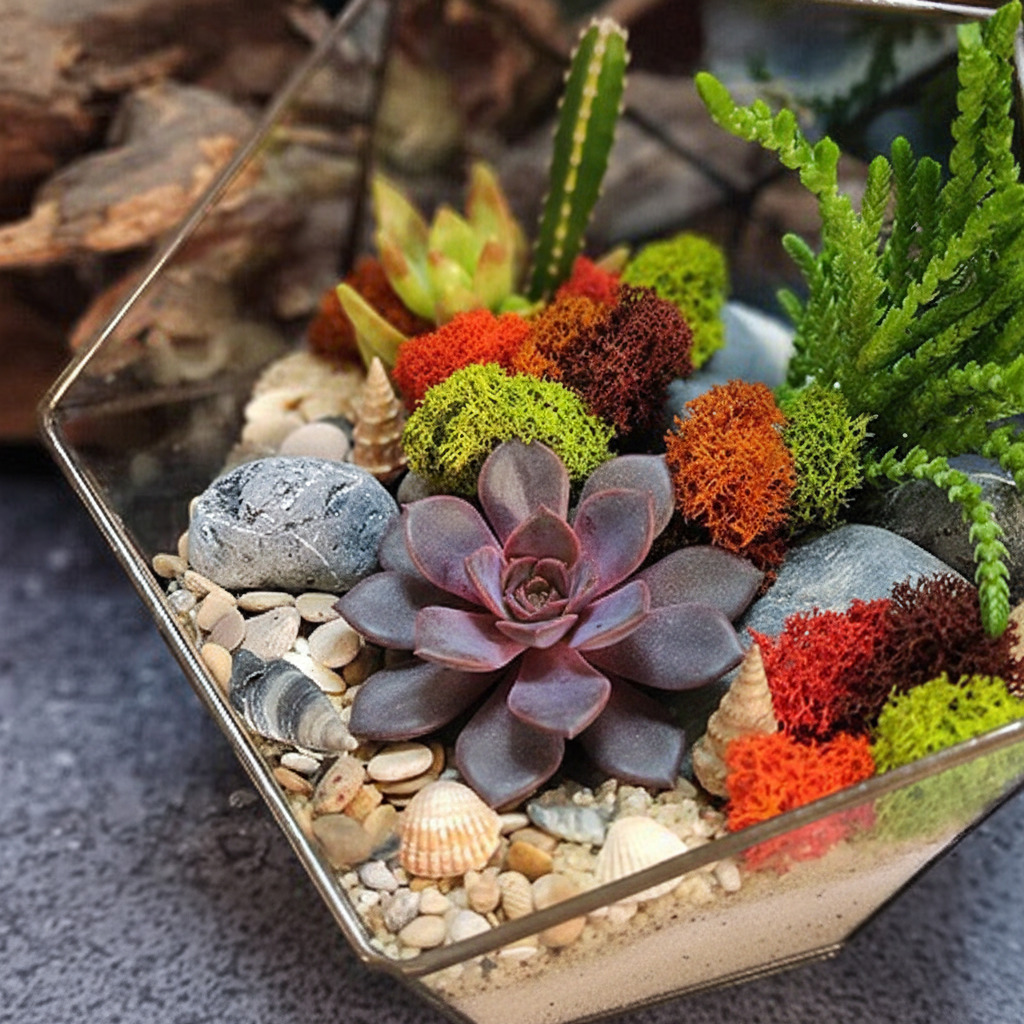 - 3-5 растений (суккуленты, кактусы, мох)