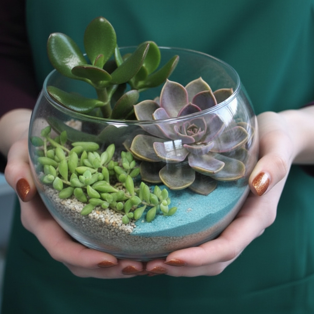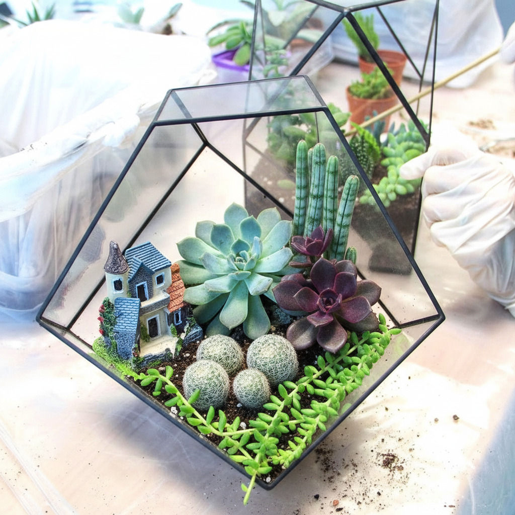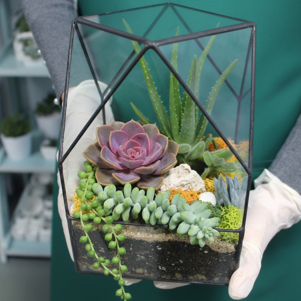 Флорариум — это миниатюрный сад за стеклом, где живут неприхотливые растения: кактусы и суккуленты. Такие композиции в стеклянных сосудах стали модным элементом декора, натуральным аромадиффузором и изящным подарком для близких. Психологи считают создание флорариумов современным антистресс-хобби — медитативным и доступным каждому.