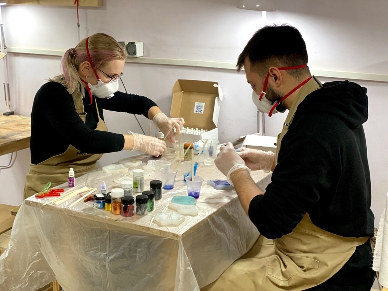 - Работа с эпоксидной смолой: обучение правильному смешиванию и колеровке