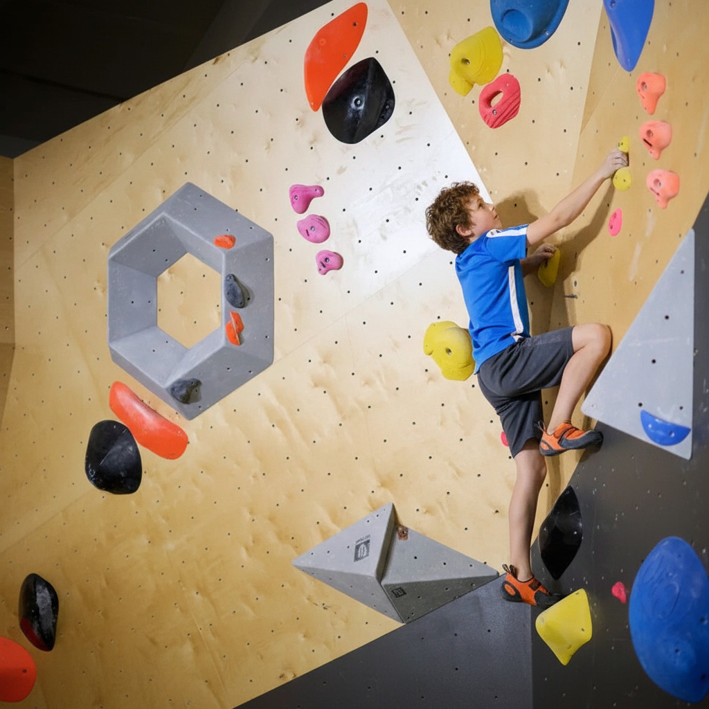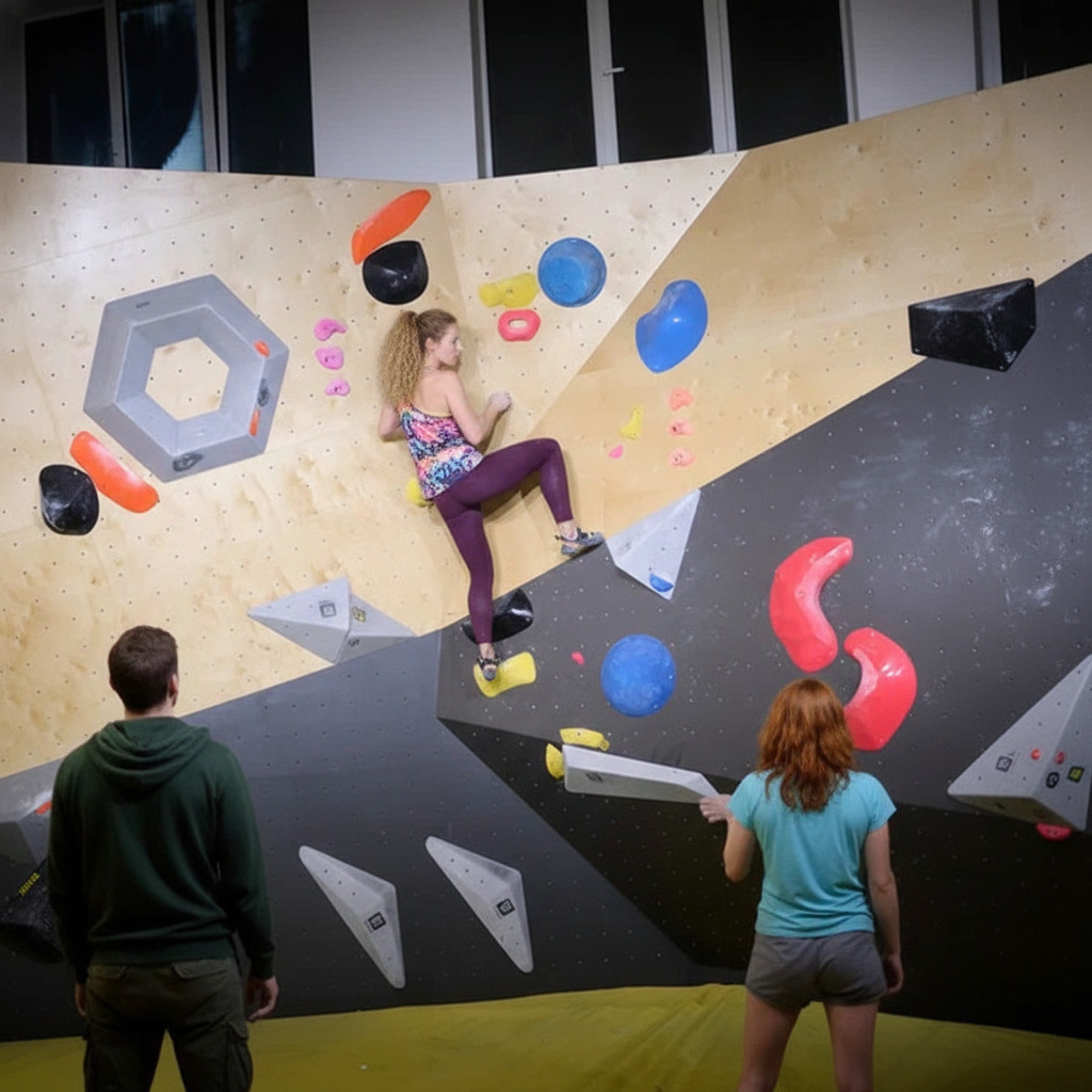 Наш скалодром предлагает современное пространство для занятий скалолазанием с разнообразными трассами и рельефами, включая имитацию натурального скального рельефа.