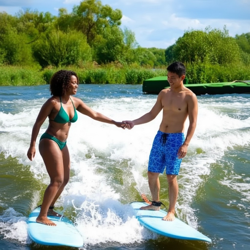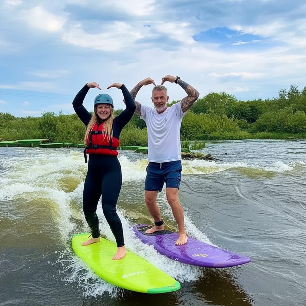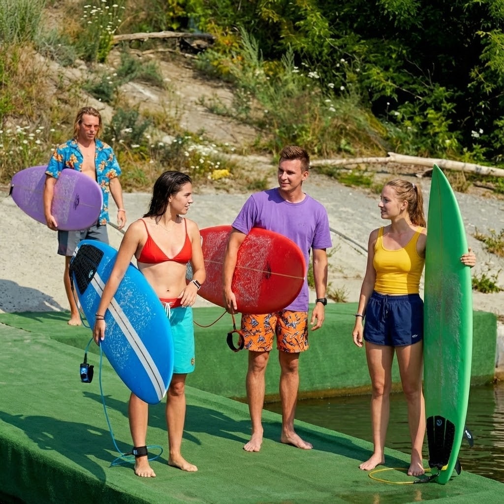 - Тренировка: Урок на серф-тренажерах для отработки баланса и техники.