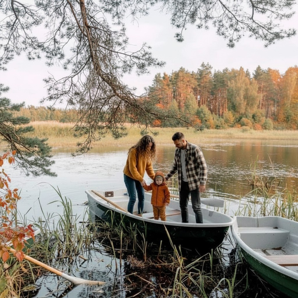 по лесным тропам — на велосипедах. Потрогать ковер из белоснежного мха. Сходить на рыбалку. Вечером греться у камина или костра.