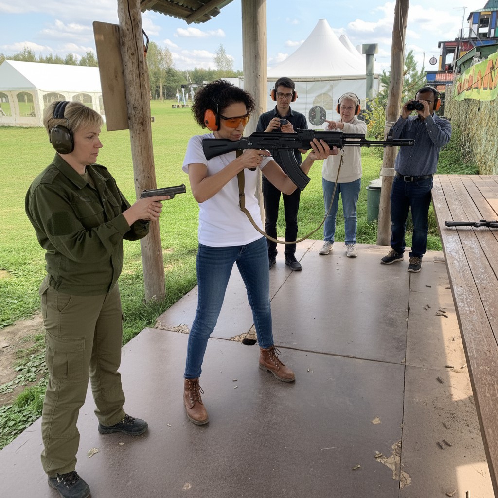 Стрельба из автомата Калашникова (10 холостых патронов на человека);