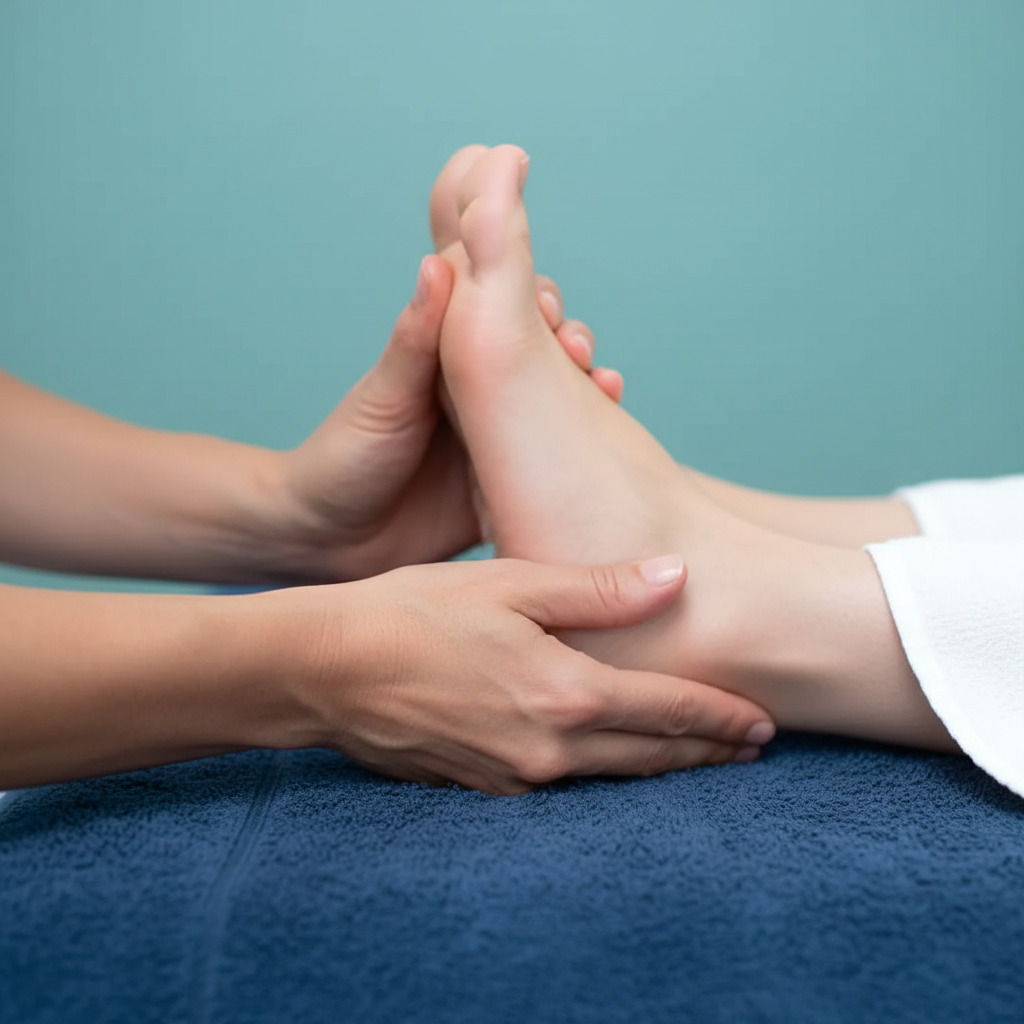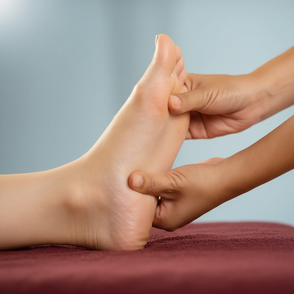 ✔ Основной этап: Тщательное разминание всей поверхности стопы с обеих сторон с помощью глубоких массажных движений.