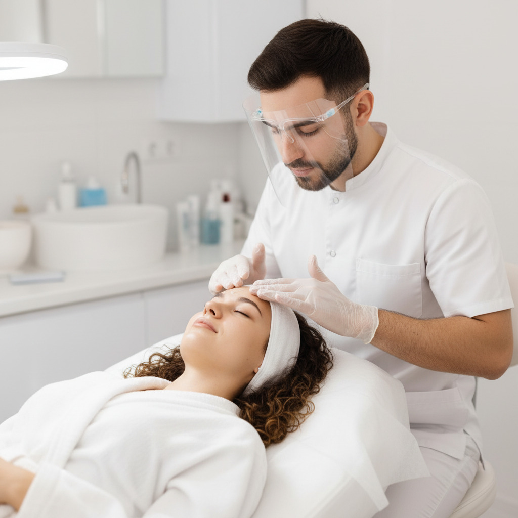 Механическая/инструментальная обработка: При необходимости оставшиеся комедоны и другие несовершенства аккуратно удаляются косметологом вручную или с применением специализированных инструментов (ложка Уно, игла Видаля).