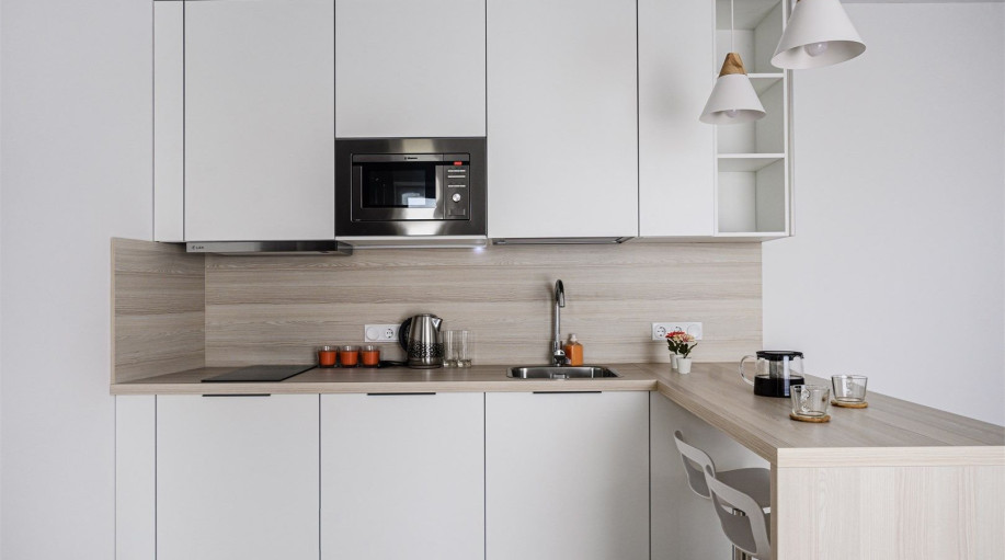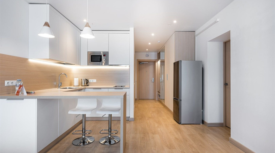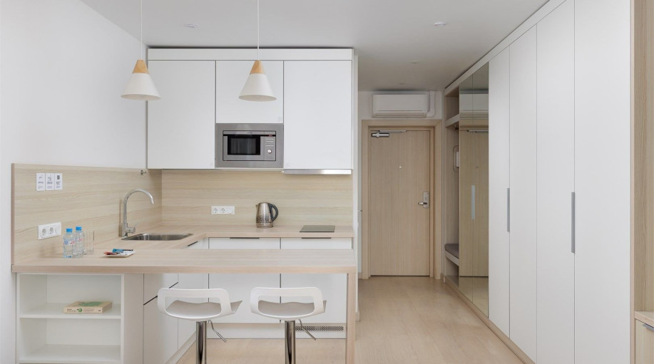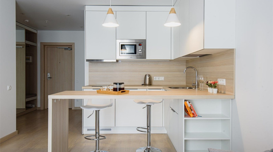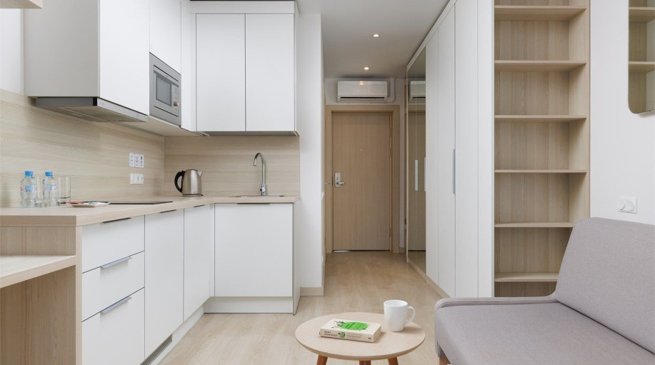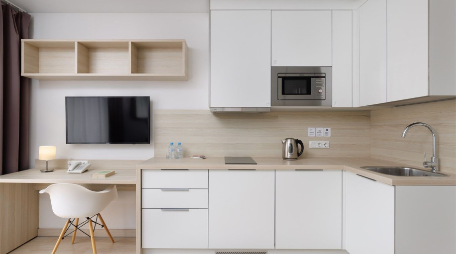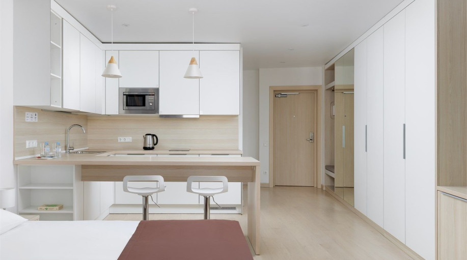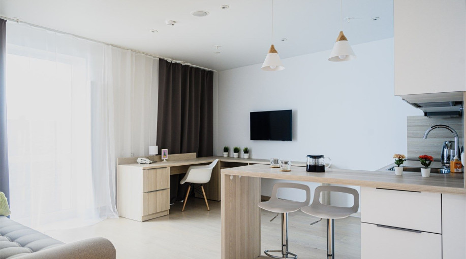 Все апартаменты оснащены кухней. Комплекс имеет большую внутреннюю территорию с фуд-кортом, детской площадкой, спортивной площадкой, площадкой для выгула питомцев.