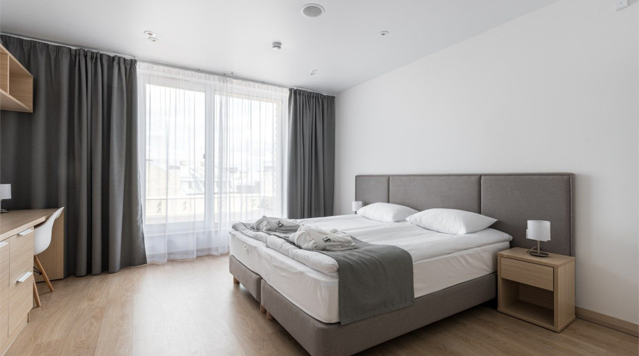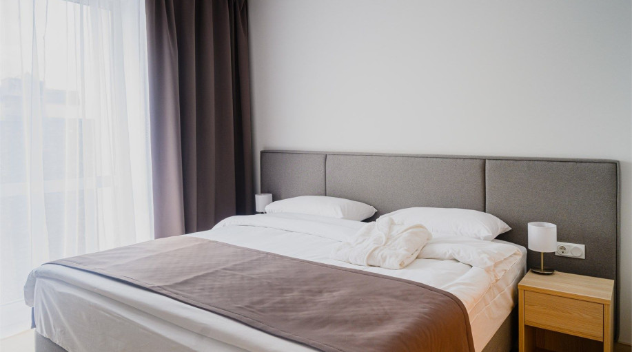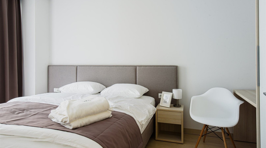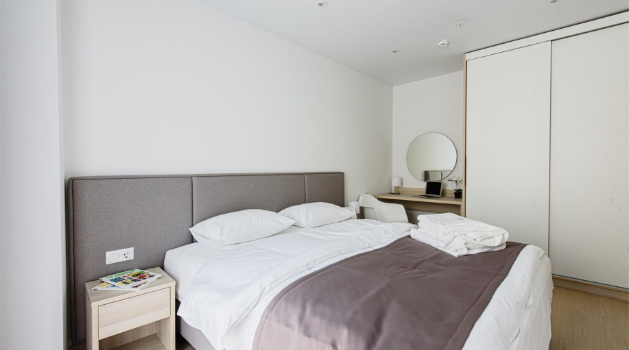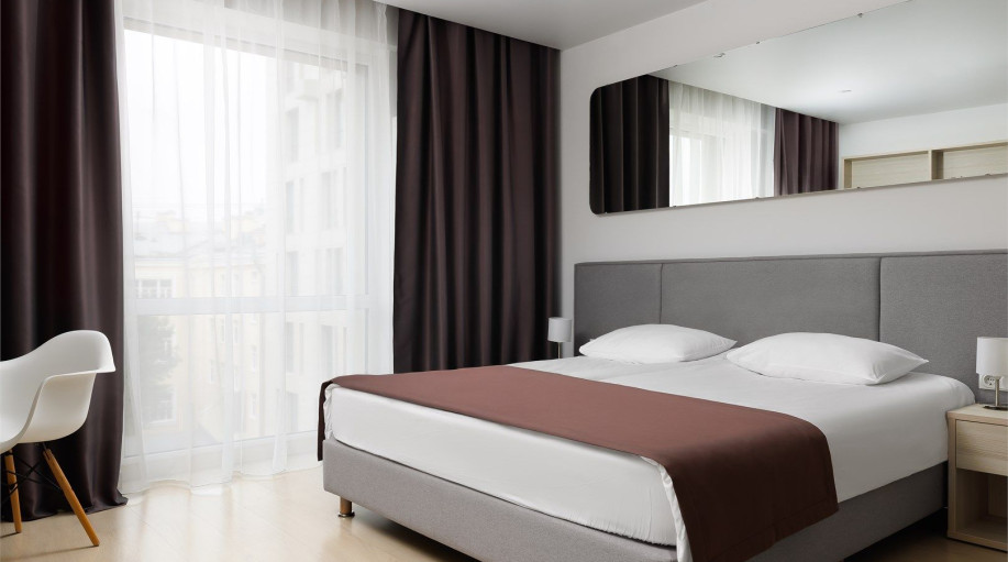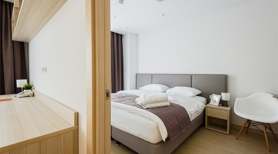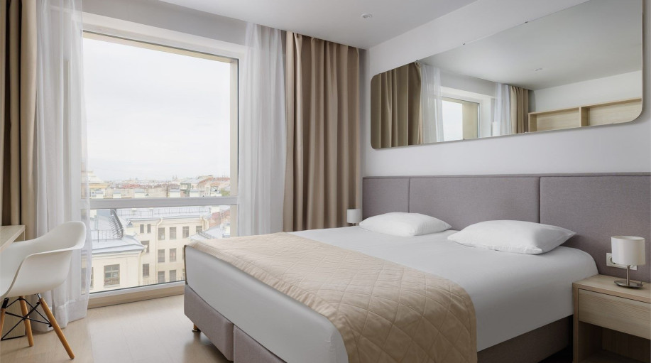 Апартамент категории "Стандарт" с одной большой кроватью и видом на город. Апартаменты расположены на 8 и 9 этажах. Из окон открывается панорамный вид на основные доминанты города. Обращаем Ваше внимание, что халаты предоставляются бесплатно по запросу. При выборе размещения ребенка без отдельного с..