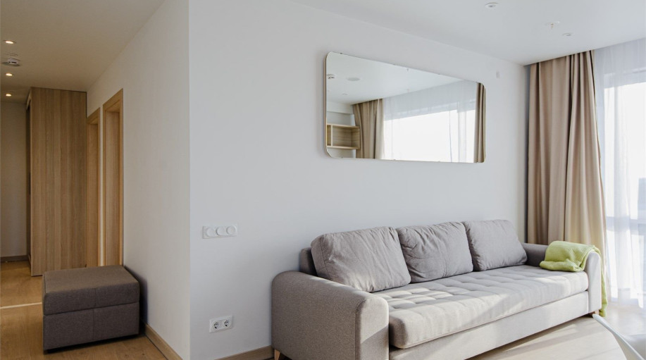 Трехкомнатный апартамент площадью 64 кв.м. позволит с комфортом разместиться большой семье или компании друзей. Апартамент имеет удобное зонирование для отдыха: