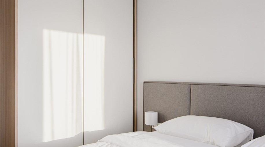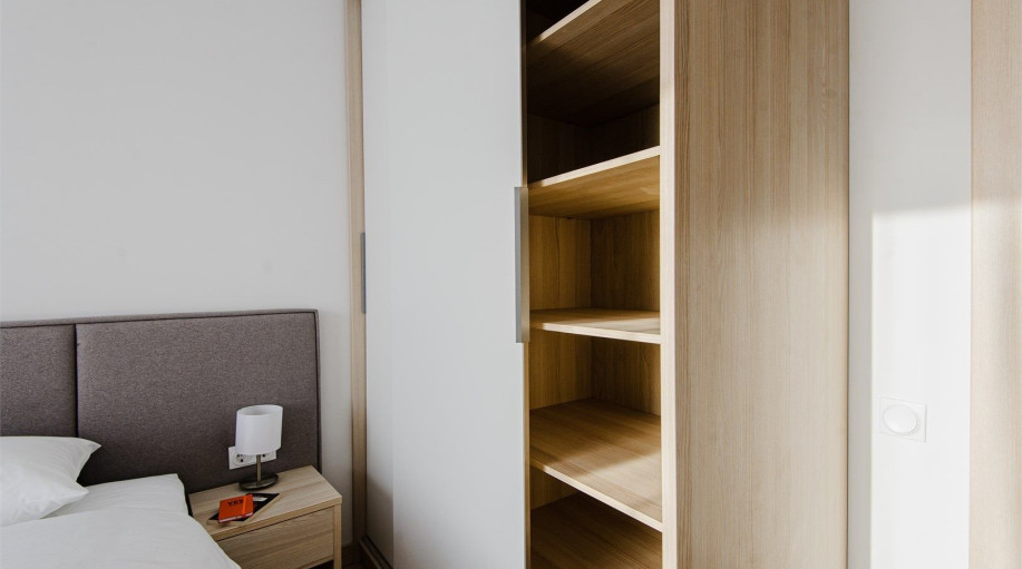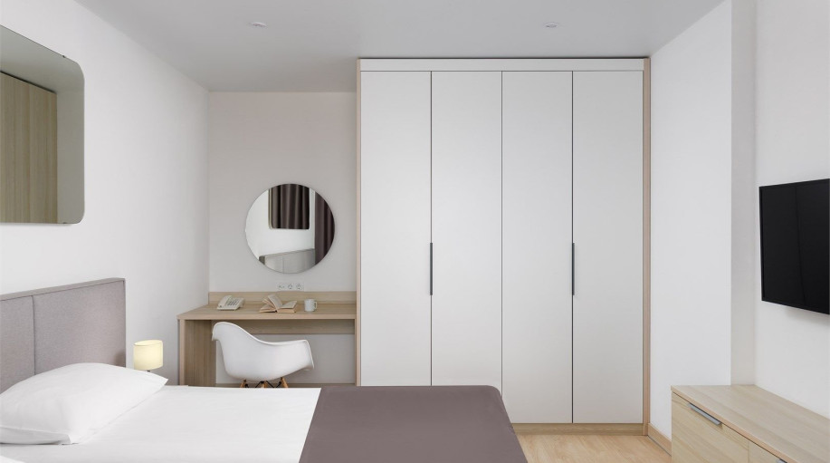 ✔ Спальню с удобной двуспальной кроватью размера king-size (180×200 см)