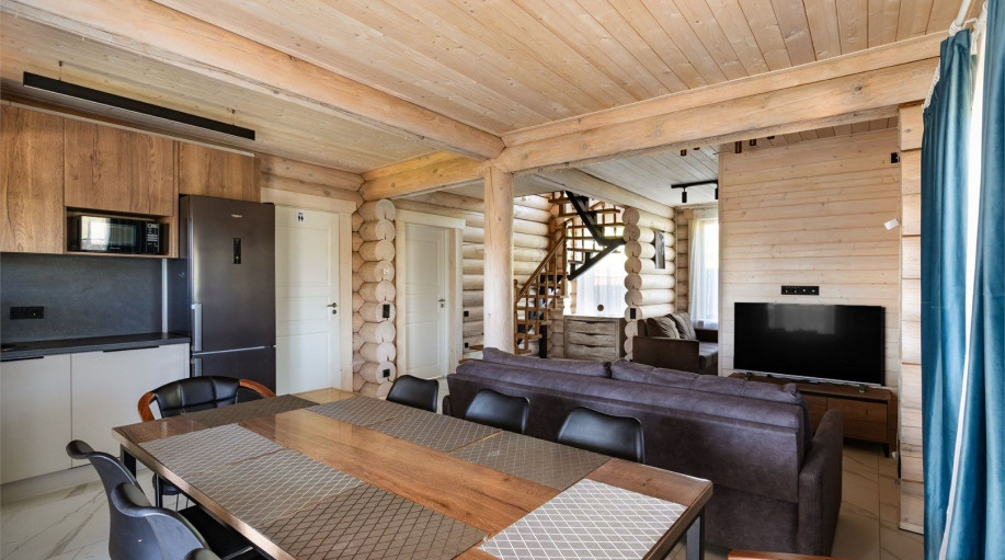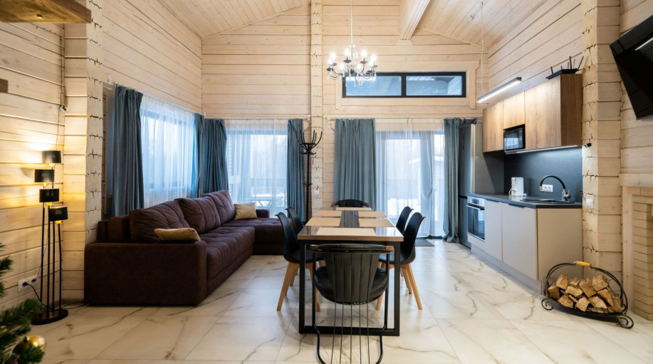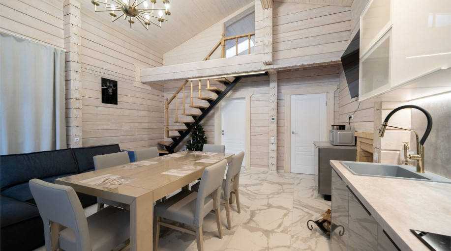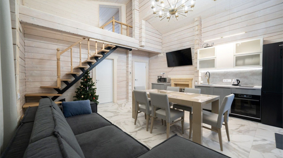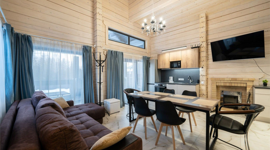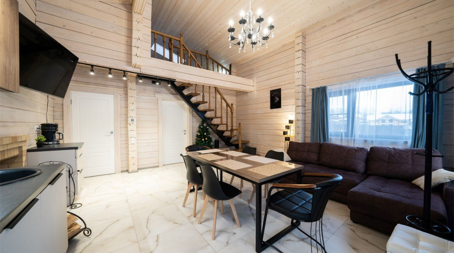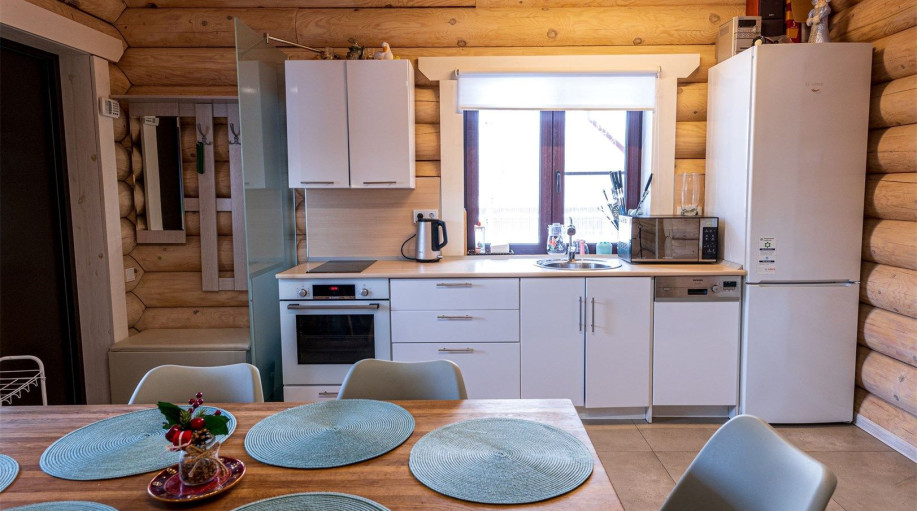 Новый уютный дом с баней на дровах для семьи или компании из 4-6 человек. В доме имеются 2 спальни на первом и мансардном этажах и просторная кухня-гостиная с диваном, который обеспечивает еще 2 дополнительных спальных места. Кухня оборудована варочной панелью, духовым шкафом и посудомоечной машиной..