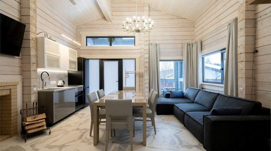 Дом "Дом из бруса с камином и баней из липы 4+2"