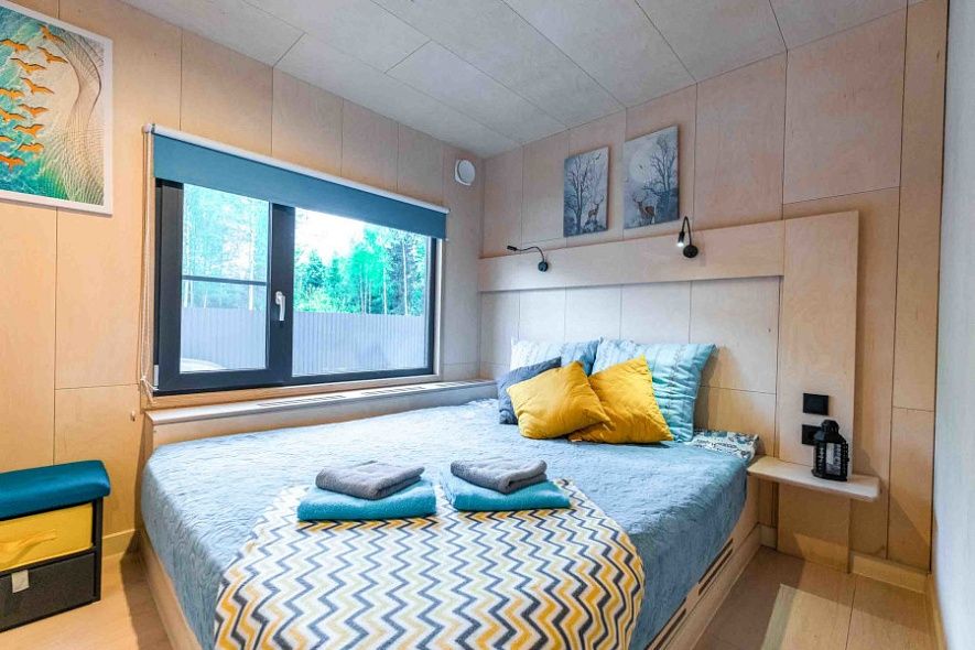 Внутри домика вы найдете посудомоечную (таблетки предоставляются) и стиральную машину, кофеварку, постельное белье, полотенца, смарт ТВ, Wi-Fi, настольные игры, полный набор посуды, полностью оборудованную кухню, тапочки, косметические средства.